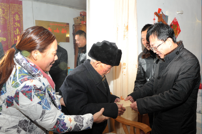 “今天我們代表農場的黨政工領導一起來慰問百歲老人,祝愿老人福如東海、壽比南山。”王進強一邊把一封裝有慰問金的信封交到老子的兒女手中,一邊熱情地說道。