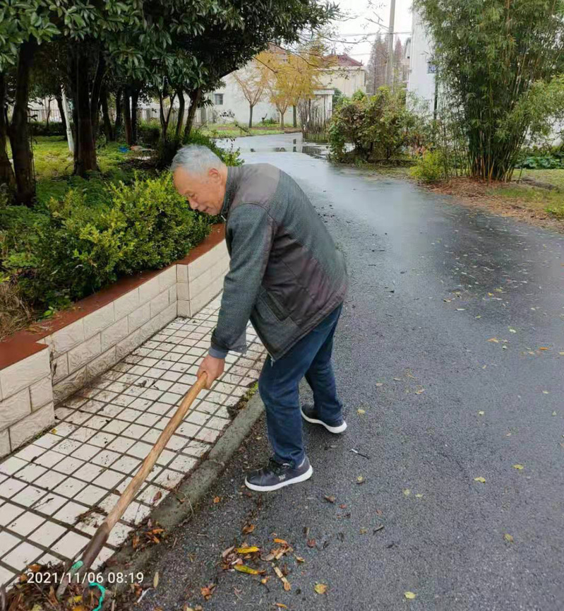 一場秋雨后的下午,弶港農場杜鵑居委會老黨員楊存林,拿著鐵鍬在科技新村公共花壇邊打掃衛(wèi)生。據悉,農場科技新村中心區(qū)域周邊的公共花壇,長期以來一直由楊存林自備工具進行義務維護。作為一名黨員志愿者,他多年來一直積極參加社區(qū)建設和志愿服務,贏得了居民群眾的高度贊譽。今年來,楊存林每當聽到別人夸贊他時,他總是笑著謙虛說道:我是一名老黨員,黨的100周年生日,我還是要做點事情的。