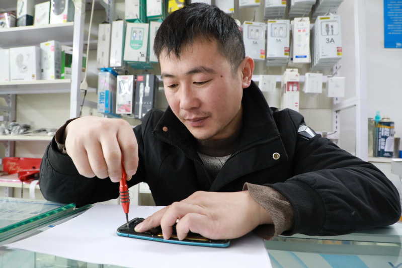 2007年,高中畢業的趙鵬選擇外出打工,跟著幾個朋友一路北上成為北漂一族。面對自己無技術、無學歷的現狀,以及手機使用率的高漲,頭腦靈活的他第一就業方向選擇了手機維修。一學就是三年,一個小小的手機他用了整整三年才把手機芯片、集成電路等等全部摸索清晰。用他自己的話說就是學習、學習、再學習,不放過任何可以學習的時間。三年的學徒生涯讓他對自己有了一個清晰的認識,但是北京的房價高、競爭壓力大,無法讓他在這個城市里站穩腳跟,于是他選擇了回江蘇工作,拿了所有積蓄和朋友在南京開了一個手機維修店面,這一忙又是三年,這段時間內他精益求精,針對手機遇到的不同疑難雜癥,他是“手到病除”。2016年,趙鵬帶著用6年青春時光換來的專業技術,回到了東辛農場,開了一家夫妻店---潤達手機大賣場,主要負責手機維修和銷售等業務。他開店初期,因為資金不足,不敢投入過大,但在后續的維修過程中,居民逐漸認可了他的手藝,店面由一個10平方米擴大到了70平方米的門面,員工從原有的夫妻檔加入了2名青年員工,年收入也達到了8萬余元。