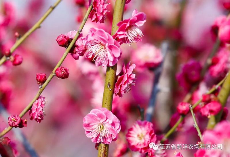 春意漸濃,和煦三月。甫一進入容器苗基地,便會被一顆造型奇特、年代感十足的海桐所吸引,曲音婉轉的鳥鳴聲不僅愉悅了聽覺,跟著風遞來的暗香,還能尋得一大片滿目映紅、花香撲鼻、爛漫嬌艷的紅梅,這便是新洋容器苗基地內正爛漫的“梅”景。