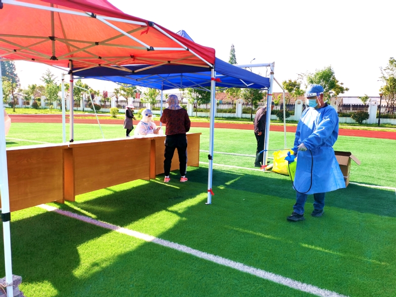 我在崗,您省心。“能做一點是一點,疫情防控是我們大家共同的事。”姜明亮是社區(qū)機關(guān)黨支部一名預(yù)備黨員,當他得知5月3日夜班值班人員臨時有事便主動請纓,從晚上八點到次日早晨八點,他把承諾當做責(zé)任來踐行。5月4日農(nóng)場組織全員核酸檢測,他一掃夜班值守的疲憊,直奔迎湖健身廣場核酸采樣點,背上消毒機進行現(xiàn)場環(huán)境消殺。劉圩小學(xué)采樣點,只見一位“小藍”手拿擴音喇叭對著居民喊話:“病毒無情人有情,健康連著你我他,請大家保持一米線。”經(jīng)過仔細辨認大家才認出她是社區(qū)財務(wù)劉玉。“平時聲音不大,維持秩序時聲音倒不小。”大家紛紛為她點贊。“您好,請出示身份信息。”三分場工作人員劉昕身穿白色防護服,正忙著采集身份信息。朝陽下,汗水浸透了衣衫、曬紅了臉頰,他卻沒有一聲抱怨。當天他共采集490個信息,這也是他連續(xù)五次完成三分場采集點數(shù)據(jù)采集任務(wù)。