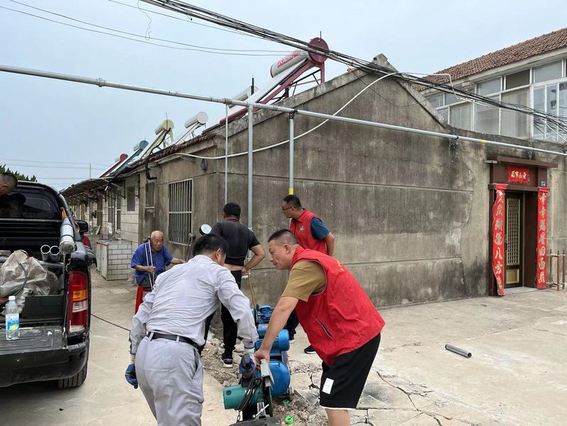 近日,室外近40度的高溫撲面而來,熱氣令人眩暈。然而,在炎炎烈日中城南居委會黨支部黨員志愿者與射陽新奧燃氣公司的工作人員在居民區內對天然氣管道進行測壓與施工,他們揮汗如雨、從不懈怠,始終堅守在自己的崗位上。面對高溫炙烤和烈日的直射,黨員志愿者自行購置防暑降溫物資如藿香正氣水、清涼油防暑等藥品,以備不時之需。協調安裝天然氣管道各種突發的情況,為了居民安全使用上管道天然氣保駕護航。
