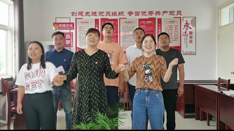 吟唱紅歌點燃家國情懷。“日落西山紅霞飛,戰(zhàn)士打靶把營歸把營歸,胸前的紅花映彩霞,愉快的歌聲滿天飛……”社區(qū)三樓會議室里,嘹亮的紅歌悅耳動聽,打靶歸來的喜悅之情綻放在一張張燦爛的笑容里?!拔逍羌t旗迎風飄揚,勝利歌聲多么響亮;歌唱我們親愛的祖國,從今走向繁榮富強……”在《歌唱祖國》熟悉的旋律中,黨員、積極分子們以“創(chuàng)建先進黨員組織 爭當優(yōu)秀共產黨員”黨建文化墻為背景,面對鮮紅的黨旗放聲歌唱,用歌聲表達著對黨和國家的無限熱愛。