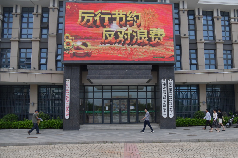 為在淮海的廣大職工居民中廣泛營造節約節儉意識,以良好的精神狀態提升省市文明單位的創建質量和水平,進一步提高轄區居民樹立節約的意識。連日來,淮海農場社區通過在文化廣場前的大屏內,將“厲行節約 反對浪費”“光盤行動 從我做起”等宣傳畫滾動播放,在周邊職工居民中產生的強勁的視覺沖擊力,從而更好地引導農場社區的廣大居民群眾從我做起,從現在做起,在農場社區形成一個愛惜糧食、杜絕餐飲浪費,樹立文明節儉新風尚的良好氛圍。