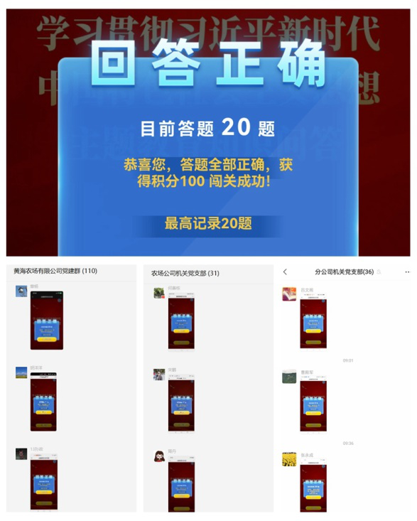 為深入學(xué)習(xí)貫徹習(xí)近平新時(shí)代中國(guó)特色社會(huì)主義思想主題教育,激發(fā)和調(diào)動(dòng)廣大黨員群眾的學(xué)習(xí)熱情和主動(dòng)性,促進(jìn)真學(xué)真懂、篤信篤行,黃海通過(guò)開(kāi)設(shè)微信小程序“黃海學(xué)習(xí)”欄目,開(kāi)展“學(xué)思想 來(lái)答題”活動(dòng),以線(xiàn)上答題形式進(jìn)行理論學(xué)習(xí)。一期參與300多人,大家紛紛曬出自己的成績(jī)單!