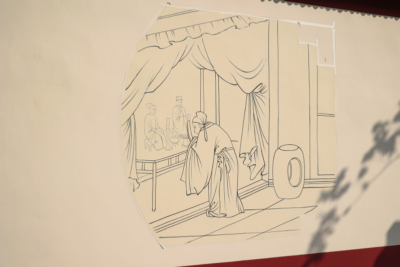 9月7日,在云臺農場普山路街道上,工作人員正在繪制“二十四孝”文化墻,一幅幅生動形象、圖文并茂的文化宣傳內容引人入勝,不僅扮靚了場域環境,也成為云臺農場引領文明新風的重要手段。