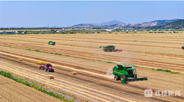 “三夏”時節,在連云港市海州區,崗埠農場王衛生產區里收割機穿梭割麥,云臺農場秸稈拾撿機與打捆一體機轟鳴聯動,新壩鎮麥田里鋒利的割臺精準“吞入”成熟麥稈……海州區統籌農機調度、強化精準服務,以科技賦能為引擎高效推進“三夏”作業。