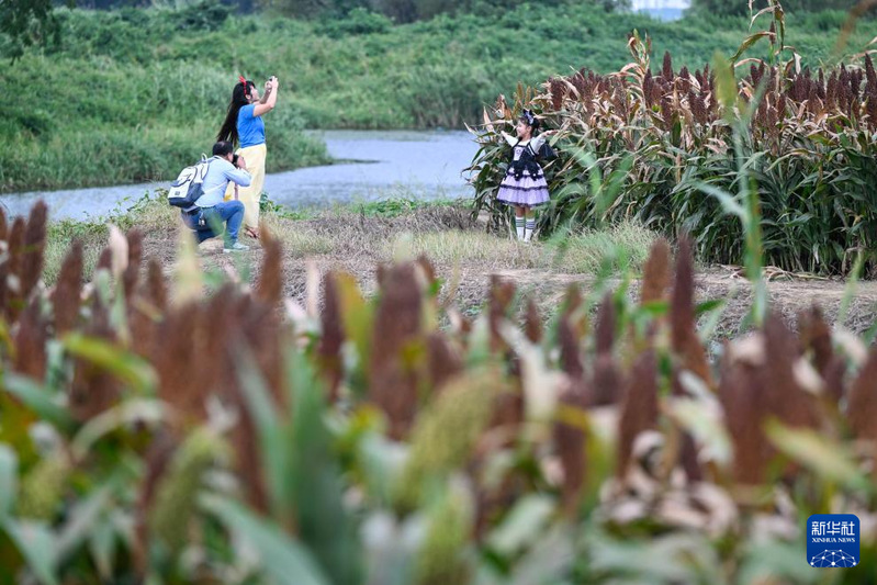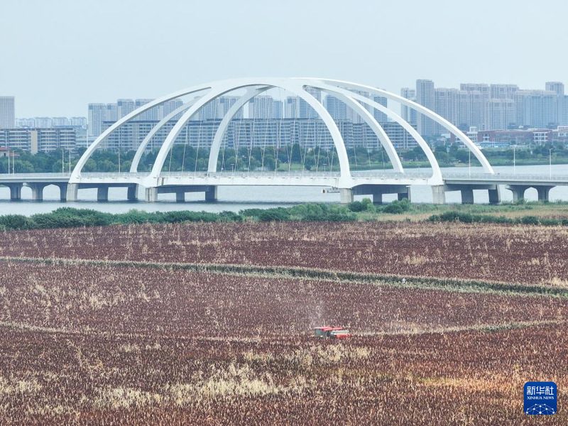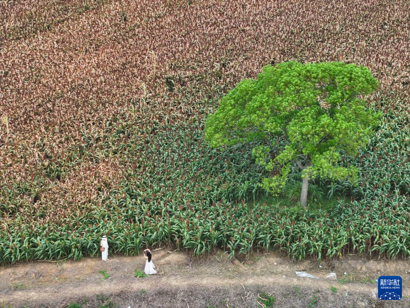 近日,江蘇農墾江心沙農場位于常州金壇長蕩湖和錢資湖畔外拓基地的8000余畝高粱陸續成熟,迎來采收季。成片的高粱映紅田野,游人在安全地帶打卡拍照,遠處收割機來回穿梭,呈現出生動喜人的豐收圖景。據介紹,該基地位于金壇“陌上花開”生態環境整治項目地段內,經過多年努力,“農業+旅游”現代都市近郊農業公園雛形初現。
