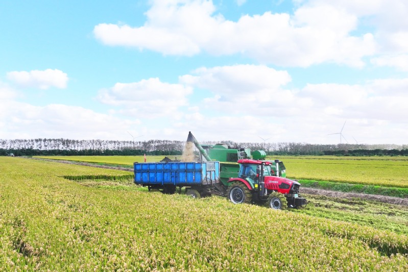 10月22日,在江蘇省鹽城市射陽縣,晴日之下的江蘇農(nóng)墾臨海農(nóng)場,萬畝稻田金黃如濤。多臺履帶式收割機(jī)在田間往來穿梭,將顆粒飽滿的稻谷源源不斷送入運(yùn)糧車,一幅現(xiàn)代農(nóng)業(yè)搶收的繁忙圖景生動鋪展。受前期陰雨天氣影響,農(nóng)場以“搶”為令,啟用履帶式收割機(jī)破解濕陷難題,既保障耕地平整,又為后續(xù)播種奠定苗齊苗壯基礎(chǔ)。同時整合農(nóng)機(jī)與烘干資源,構(gòu)建“收割一運(yùn)輸一烘干”一體化閉環(huán),全力推進(jìn)8萬余畝水稻搶收,為筑牢糧食安全屏障爭分奪秒。