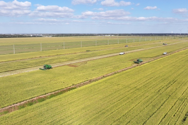 滿目金黃的稻田里,一棵棵水稻長勢喜人,稻穗腰身低垂,微風(fēng)吹過,稻香陣陣。遠處,無人收割機正在北斗導(dǎo)航的指引下,按照既定軌跡作業(yè),切割、脫粒、粉碎等一氣呵成,同步作業(yè)的無人耕地機將稻田平整,準(zhǔn)備投入新一季農(nóng)作物種植。