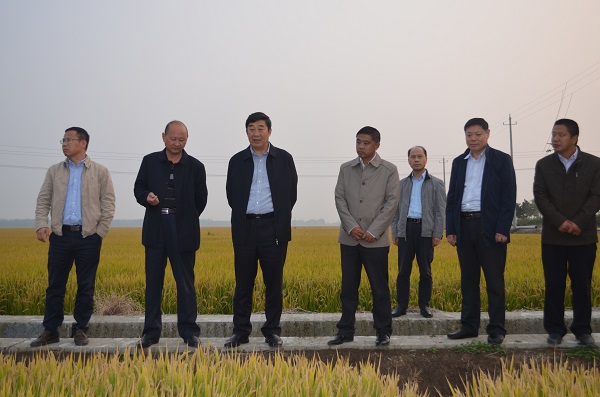 10月25日,集團公司總經理胡兆輝一行,來到工作聯系點濱淮農場有限公司調研指導工作。濱淮領導班子成員李德利、傅龍光、李文忠、鄧權才、劉雄飛陪同調研。  胡兆輝一行先后來到7大隊、12大隊查看了解田
