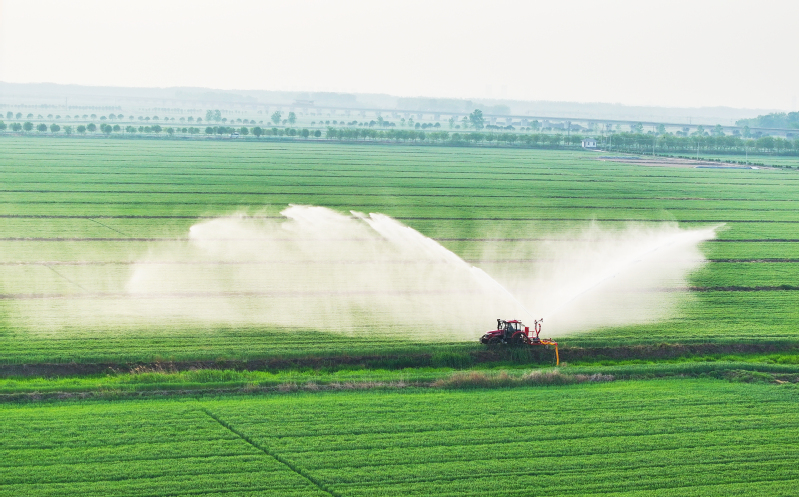 在蘇墾農(nóng)發(fā)新洋分公司新北生產(chǎn)區(qū)高標(biāo)準(zhǔn)農(nóng)田,五臺(tái)滿載生物藥劑的北斗導(dǎo)航植保無(wú)人機(jī)正沿著預(yù)設(shè)航線精準(zhǔn)噴灑葉面肥,多光譜測(cè)繪無(wú)人機(jī)同步監(jiān)測(cè)苗情長(zhǎng)勢(shì),全力守護(hù)麥田健康。新洋分公司將綠色防控與統(tǒng)防統(tǒng)治有機(jī)結(jié)合,所有基層一線青年員工全部掌握無(wú)人機(jī)操作技術(shù),實(shí)現(xiàn)了近6萬(wàn)畝農(nóng)田的飛防作業(yè)全覆蓋。目前,共引入更新大疆T70、T100等新型無(wú)人機(jī)23臺(tái)。