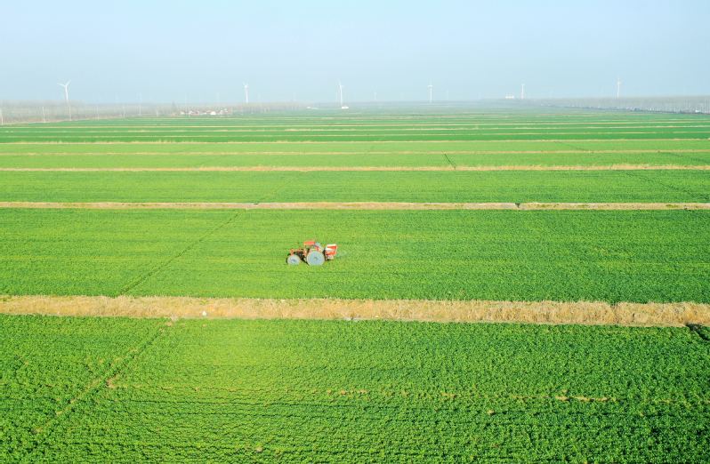 3月13日,江蘇省鹽城市射陽縣,在江蘇農(nóng)墾新洋農(nóng)場的一處高標準農(nóng)田里,農(nóng)技人員正在操縱一臺新式植保無人機,為小麥開展春季施肥作業(yè)。當前,新洋農(nóng)場6萬畝高標準農(nóng)業(yè)生產(chǎn)基地進入春管關(guān)鍵階段,該農(nóng)場搶抓農(nóng)時,積極開展春季田管作業(yè),助力夏糧穩(wěn)產(chǎn)增收。
