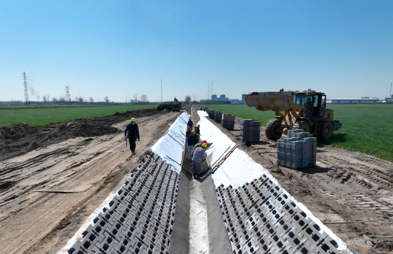 3月19日,在南通公司二大隊,土地綜合整治工作正如火如荼進行,施工團隊正在為排水溝鋪設(shè)生態(tài)磚。為更好適應(yīng)集中連片、智慧化生產(chǎn)需要,南通公司從去年起推動補充耕地土地綜合整治,項目投資1700余萬元,建設(shè)規(guī)模332.9公頃,預計可新增耕地15.4公頃,截至目前總體形象進度完成近30%。