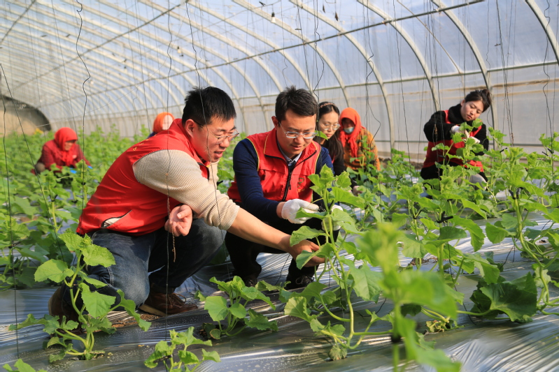 3月20日春分節(jié)氣當日,崗埠農(nóng)場組織志愿者走進高效農(nóng)業(yè)示范園18號大棚,與工作人員一起為甜瓜苗進行打杈、繞藤蔓等作業(yè),為“甜蜜事業(yè)”貢獻一份力量。