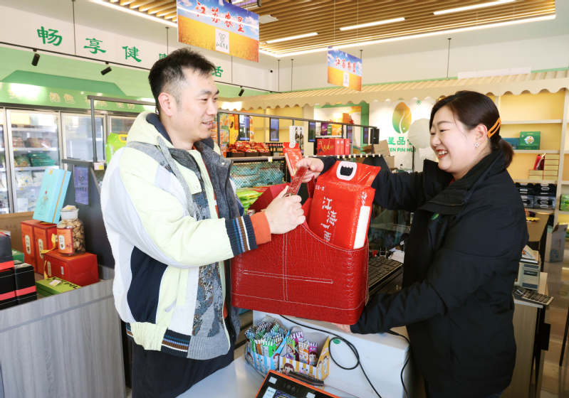 新春將至,年味漸濃。在東辛東米食品門店,琳瑯滿目的商品擺滿貨架,各式各樣的雞產品鋪滿冷藏柜,門外停靠的貨車排成長龍,工作人員正在緊張備貨,職工居民攜家帶口采買年貨,處處洋溢著喜慶祥和的節日氛圍。在冷柜展區,年貨禮盒吸引了眾多顧客駐足,大家紛紛挑選心儀的產品,銷售人員向顧客一一介紹,并現場推薦奧爾良烤翅、金粉翅中、熏雞等熱銷組合搭配。張大姨對此次購買的禮盒十分滿意,她開心地說:“外面包裝喜慶,里頭食品美味,不管是家庭聚會,還是做客送禮,都很合適,身邊親戚朋友都來爭相購買。”店長謝文文介紹,目前節日市場需求旺盛,速凍雞產品銷量激增,店內工作人員齊上陣,加班加點全力補貨備貨。同時,積極與廠家供應商對接,增加熱銷產品供貨頻次,確保雞產品種類齊全、優質優價。同步推出多款禮盒產品,滿足消費者多樣化、個性化需求。截至目前,店內已儲備貨品30余噸,禮盒4000余份,發往南京、淮安、鹽城、南通等地新年禮盒2000余份。