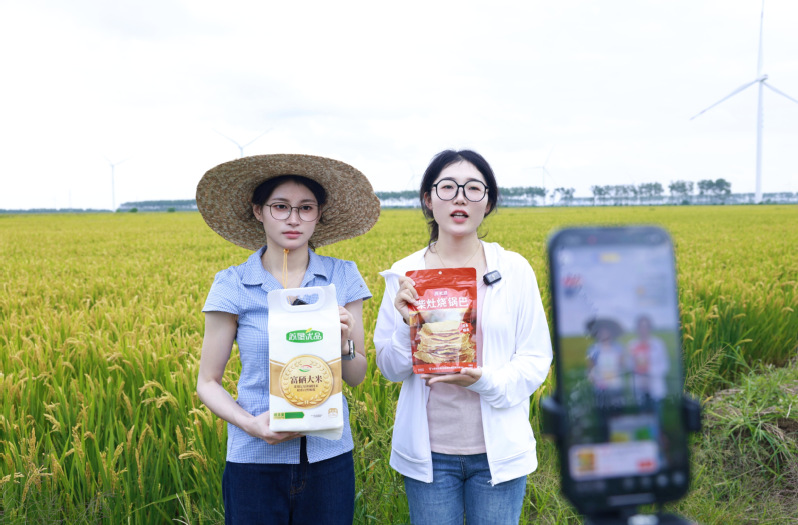 走進東辛農場直播間,青年主播化身為“蘇墾優品推薦官”,憑借對產品的深入了解和專業素養,以生動形象、富有感染力的語言,熱情地向觀眾推介精心挑選的5款優質農產品。宋巖 攝