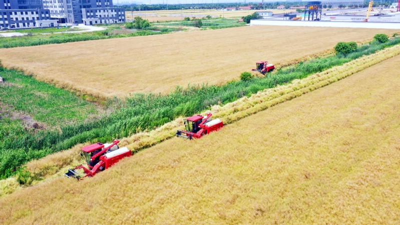 風(fēng)吹麥田千重浪,麥粒漸滿穗金黃。5月22日中午,4臺(tái)約翰迪爾C2400大型聯(lián)合收割機(jī)開進(jìn)了蘇墾農(nóng)發(fā)濱淮分公司27大隊(duì)大麥田間,迎來(lái)了今年夏收“第一鐮”。伴隨著收割機(jī)陣陣轟鳴聲,一排排大麥被卷入收割機(jī)中,稻穗經(jīng)過(guò)脫粒、碎桿等工序后收入機(jī)艙,輸送到運(yùn)糧車上,并拖向場(chǎng)頭翻曬。半天時(shí)間,近300畝大麥?zhǔn)崭罱Y(jié)束。收割現(xiàn)場(chǎng),農(nóng)水中心和大隊(duì)管理人員在田間檢查收割質(zhì)量。“這是我們今年‘三夏’的首次收割,我們前期對(duì)24臺(tái)收割機(jī)進(jìn)行檢修、調(diào)試、保養(yǎng),確保農(nóng)機(jī)以最佳狀態(tài)投入到夏收工作中,務(wù)必要把收割損失率降到最低。”農(nóng)水中心副主任孟琪表示。“今年六生產(chǎn)區(qū)大麥單產(chǎn)有望超去年,按照‘三夏’動(dòng)員會(huì)部署,堅(jiān)持質(zhì)量和標(biāo)準(zhǔn)化,搶抓晴好天氣開展收割作業(yè),計(jì)劃在28日前完成六生產(chǎn)區(qū)的大麥?zhǔn)崭罟ぷ鳎浞掷煤冒汛篼湹牟缈趦?yōu)勢(shì),奠定秋糧豐產(chǎn)基礎(chǔ)。”六生產(chǎn)區(qū)主任盧剛說(shuō)。
