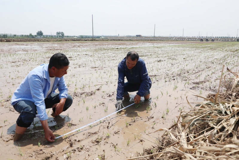 六月的東辛,連片的稻田泛起新綠。在蘇墾農發東辛分公司西陬生產區,副主任駱永華與大隊長劉輝一道卷起褲腿,深一腳淺一腳地踩進泥濘的水田里,彎腰撥開秧苗,仔細檢查株距和栽插深度。他們的身后,一串串足印蜿蜒至田埂邊,在稻田里交織成網,與整齊的秧行形成鮮明對比,這些沾滿泥土的足跡,正丈量著現代農業提質增效的新路徑。